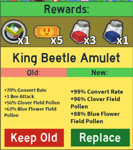Bee swarm simulator king beetle amulet. They grant several buffs to the player andor their bees and can be obtained by completing special challenges which are defeating the king beetle discovering gifted bee types participating in the ant challenge using the moon. In order to find the king beetle you must go to the blue flower field and walk to the blue bee hq. Xdarzethx roblox more. Its finally here and its the biggest update yet.
